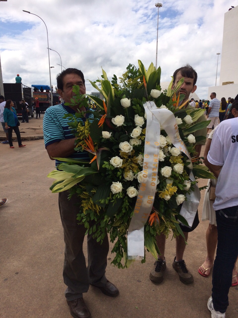 Em Brasília, manifestantes fazem um enterro simbólico do PT durante o protesto contra o governo. Na foto abaixo, eles carregam uma coroa de flores do ‘povo brasileiro’ para o partido.