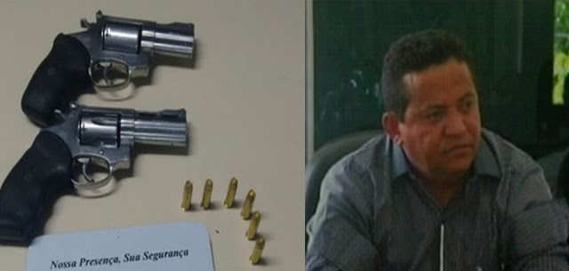 O presidente da Câmara de Vereadores de Exu, no Sertão pernambucano, foi preso em flagrante por porte ilegal de arma de fogo nesta segunda-feira (1º) no município de Ouricuri, também no Sertão do estado. Jurandir Severo de Carvalho, do PSB, estava com dois revólveres, um deles de uso restrito às forças armadas.