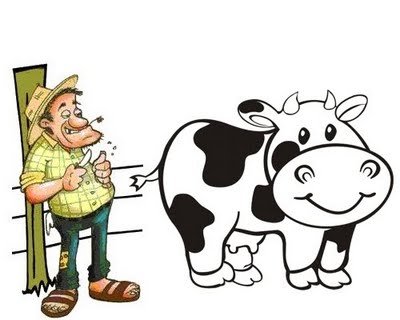 Espantado ele entrou correndo na casa, e viu que era mesmo a família que visitara com o mestre. Elogiou o local e perguntou ao senhor (o dono da a vaquinha):