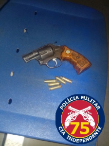 Após denúncia anônima informando que um indivíduo estava portando arma de fogo e conduzindo uma moto Honda modelo Twister nas imediações do Mercado do Produtor de Juazeiro – BA, a guarnição da 9.7501 deslocou até o local e ao abordar o condutor de nome Roberto Tolentino dos Santos, foi encontrado em sua cintura um revólver calibre .38 marca Rossi, número de série não identificado, com cinco cartuchos intactos de igual calibre.