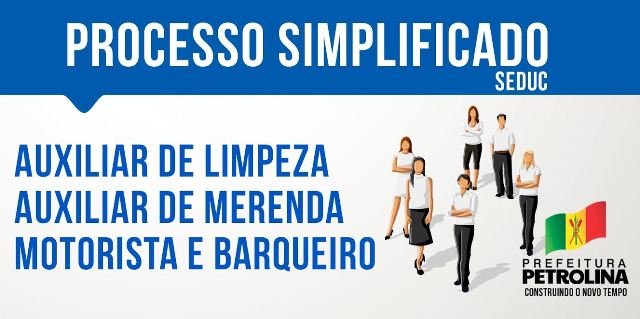 Estão abertas as inscrições para o processo de seleção simplificada da Secretaria de Educação de Petrolina, no Sertão de Pernambuco. Foram disponibilizadas 435 vagas para os cargos de auxiliar de cozinha, auxiliar de limpeza, motorista e barqueiro para transporte escolar.