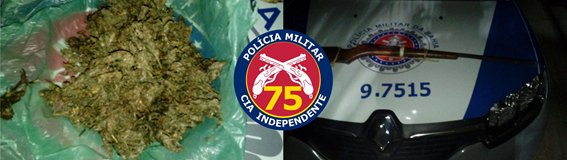 Durante rondas ostensivas e preventivas em Itamotinga, policiais militares da viatura 9.7515 observaram um indivíduo em atitude suspeita que ao perceber a presença da viatura, empreendeu fuga e deixou para trás uma espingarda de fabricação caseira e aproximadamente 200(duzentas) gramas de erva seca análoga à maconha.