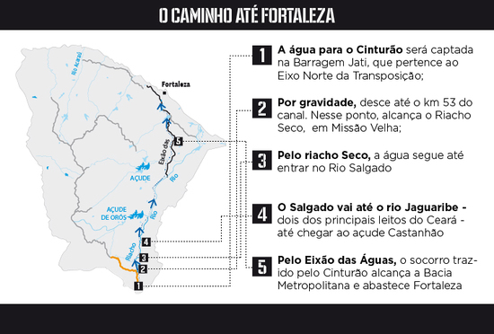 As águas do São Franciscodevem chegar ao Ceará em agosto deste ano, informou o ministro da Integração Nacional, Pádua Andrade, nesta segunda-feira, 7. Segundo a Pasta, o Eixo Norte está com 96% das obras finalizadas. A estimativa é de que as águas abasteçam mais de 7 milhões de pessoas em 223 cidades no Ceará, Pernambuco, Paraíba e Rio Grande do Norte — sendo 4,5 milhões moradores da Região Metropolitana de Fortaleza.