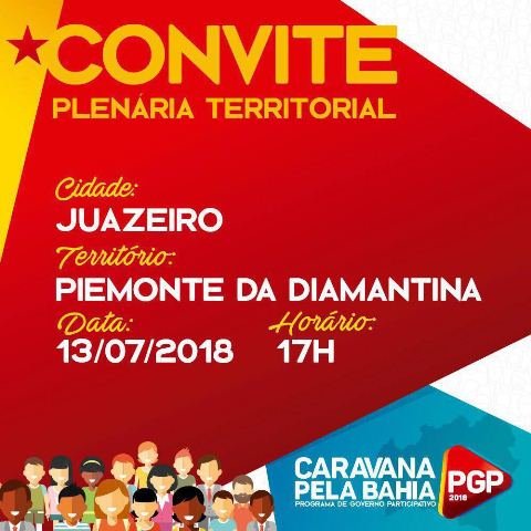 As plenárias territoriais vão passar pelos 27 territórios de identidade do estado, mas todos podem participar da construção do PGP através da internet. Pelo site www.pgpbahia.com.br, é possível cadastrar propostas em diversas áreas, a exemplo de educação, segurança, infraestrutura e emprego. Nos dois encontros já realizados, Rui Costa estimulou a militância a criar grupos digitais de debate sobre demandas regionais para que sejam apresentados às coordenações dos territórios de identidade nas próximas reuniões.
