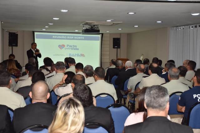 O Secretário de Segurança Pública da Bahia, Maurício Barbosa, presidiu, na manhã do dia dez (10) deste mês, Reunião do Programa Pacto Pela Vida,política pública de segurança do governo baiano que atua com intuito de reduzir constantemente a violência e a criminalidade no Estado, estavam presentes no evento o Comandante Geral da Policia Militar da Bahia, coronel Anselmo Brandão acompanhado do comandante do policiamento da Região Norte, coronel Anselmo Bispo e demais comandantes da Região e o Delegado Geral da Polícia Civil da Bahia, Drº Bernardino Brito Filho juntamente com seu staff de Delegados.