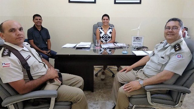 Na manhã desta quinta-feira, 30, a Prefeita de Sento-Sé, Ana Passos e o Secretário Municipal de Educação, Izamar Reis se reuniram no gabinete da gestora com o Major PM, Cláudio Luís Pitta Santos e Capitão PM, Dejanilson Esbaltar. Na ocasião, foi discutido o projeto da Escola Militar Municipal para ser implantando e desenvolvido no município.