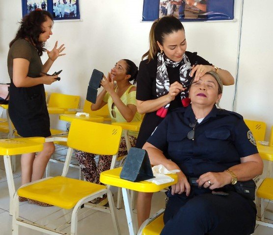 Ontem (10), as guardas foram presenteadas com uma sessão de cuidados e beleza. A ação foi organizada pela GCM Isabel Cristina. “Esse momento foi idealizado com o objetivo de proporcionar um resgate da nossa autoestima. Toda mulher precisa e deve se sentir bonita e valorizada”, destacou Isabel.