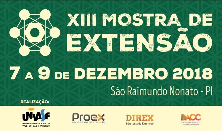 A Universidade Federal do Vale do São Francisco (Univasf), por meio da Pró-Reitoria de Extensão (Proex), realizará a partir do dia 7 até 9 de dezembro a XIII Mostra de Extensão. A iniciativa tem como objetivo divulgar os trabalhos de extensão que estão sendo desenvolvidos pelos estudantes da instituição. O evento será realizado no Campus Serra da Capivara, em São Raimundo Nonato (PI). As inscrições estavam abertas até ontem dia 11 de novembro.