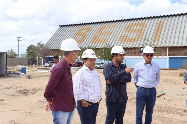 Na manhã desta quarta-feira (12), o prefeito Paulo Bomfim visitou a obra de construção da unidade integrada do Sistema Fieb – Sesi/Senai/IEL, que vai contribuir com o desenvolvimento de Juazeiro e Região Norte, oferecendo capacitações/qualificação profissional e lazer e esporte. Acompanharam a visita, o gerente do Sesi Alisson Virgolino, os secretários municipais Clériston Andrade (Governo), Edvan Gonçalves (Relações Institucionais), Tiano Félix (Adeap) e Paulo César de Andrade Carvalho (Comunicação).