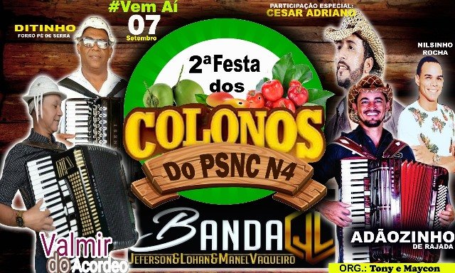 A festa dos colonos oficial do N4 conta com o apoio da Prefeitura de Petrolina, Vereador Osório Siqueira e demais parceiros. Outras informações sobre o evento podem ser obtidas pelos números: (87) 9. 8803 – 0525, ou, 9.9162-1609, 9. 8157-7541.