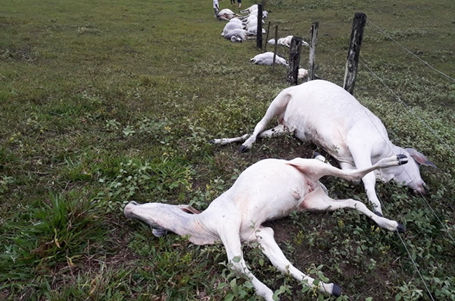 Um raio matou 16 cabeças de gado, na tarde deste sábado, (04/01), em uma fazenda situada próximo a entrada do alambique, em Itabela. Segundo o proprietário da fazenda Conjunto Limoeiro, Pedro Covre, o raio caiu próximo a uma cerca de arame e matou os animais que estavam próximos.