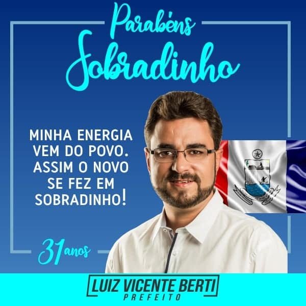 Temos hoje todos os serviços públicos funcionando plenamente e com qualidade, estruturamos a cidade, atualmente quase 100 por cento saneada e pavimentada, investimos em saúde, educação, no social, no homem do campo e no cuidado com nossa gente. O maior patrimônio desta terra, é seu povo, forte, hospitaleiro e trabalhador, a quem convido para celebrar os 31 anos de história da nossa terra amada. Convido também os amigos dos municípios vizinhos. Sobradinho estará sempre de braços abertos para aqueles que lhe querem bem”, declarou o Prefeito Luiz Vicente Berti.