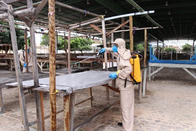 A ação coordenada pela Secretaria de Desenvolvimento Econômico e Turismo, conta com agentes de limpeza da Secretaria Executiva de Serviços Públicos e tem o objetivo de diminuir o risco de transmissão do coronavírus. O trabalho de desinfecção está sendo feito com água, sabão e cloro.