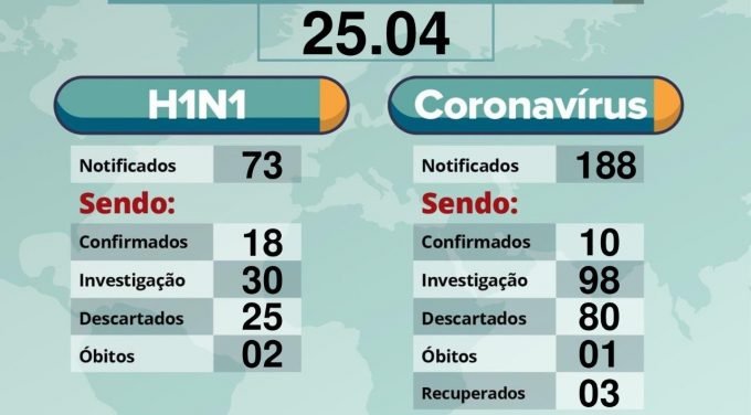 No boletim deste sábado (25), a Secretaria da Saúde de Juazeiro informa que permanece testando e acompanhando pacientes com suspeita de COVID 19 e H1N1 na cidade. Nesta atualização a Sesau informa que tem 188 notificações para o novo coronavírus sendo que 80 exames já foram descartados e outros 98 estão em análise pelo Laboratório Central (LACEN) em Salvador. Os dados de casos confirmados permanecem em 10 positivos sendo que destes, três pacientes já estão recuperados, ou seja, com cura clínica e o município tem o registro de um óbito pela COVID 19.