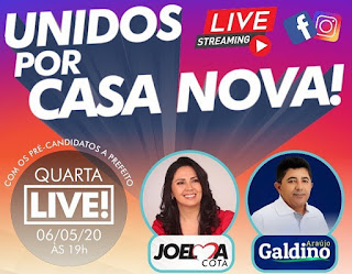Em live transmitida pelo Facebook e Instagram, Joelma Cota e Galdino Araújo, pré-candidatos, reafirmaram que caminharão juntos nas disputa pela prefeitura de Casa Nova nestas eleições de 2020.