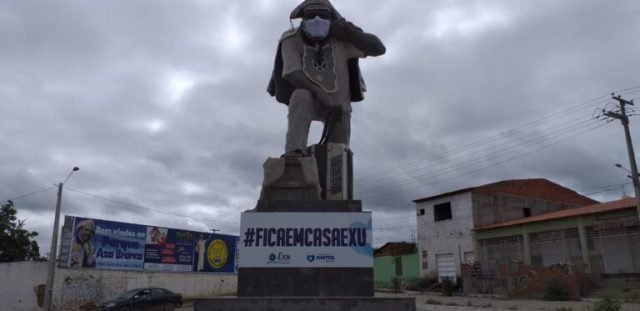 Em Exu-PE, no Sertão do Araripe, o combate ao novo coronavírus deu uma cara nova a estátua de Luiz Gonzaga, o eterno Rei do Baião. Um dos principais cartões portais da cidade recebeu a máscara de proteção e a frase “Fica em casa Exu”.