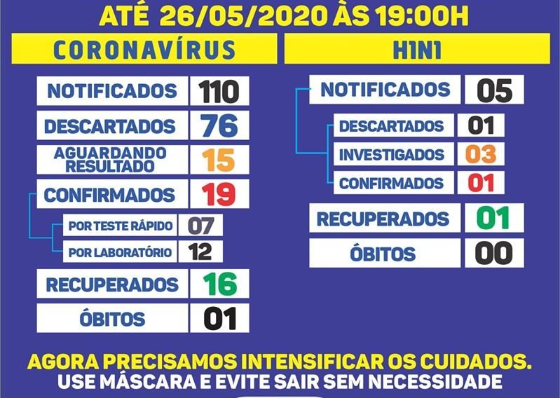 O boletim dos dados atualizado diariamente da Secretaria Municipal de Saúde de Remanso, divulgado nesta terça-feira (26), apontou 19 casos confirmados da Covid-19 na cidade. Ontem foram 02 resultados positivos para a doença e outros 02 pacientes com registro de cura do novo coronavírus.