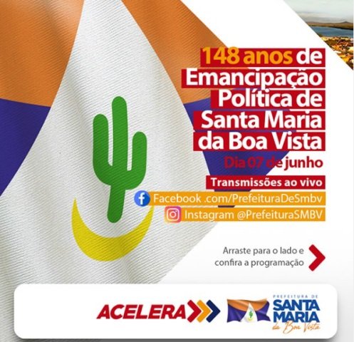 Veja a programação da comemoração do aniversário de Santa Maria da Boa Vista, fique em casa, e programe-se para não perder nenhuma Live.