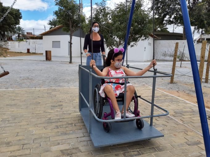 O primeiro balanço adaptado para crianças usuárias de cadeiras de rodas de Petrolina ganhou o coração da pequena Anna Luísa, de 10 anos. A garota e sua mãe, Girleide Simões, foram convidadas pela prefeitura para testar o equipamento.