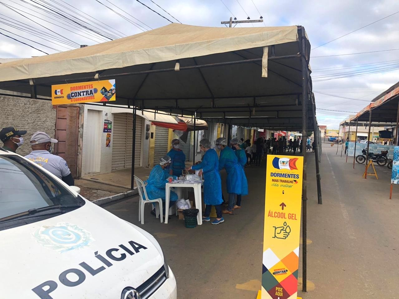 Nesta sexta-feira (10), os profissionais da saúde foram ao centro comercial para realizar a testagem aleatória da população, garantindo assim mais segurança aos dormentenses.