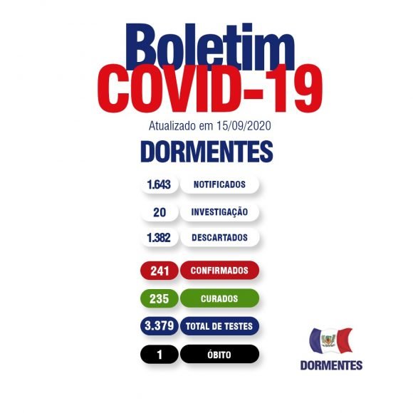O boletim da Covid-19 atualizado nesta terça-feira (15) pela Secretaria de Saúde de Dormentes, mostra que o município confirmou três novos casos da doença. Com as novas confirmações, Dormentes têm 241 confirmados, dos quais: 235 pessoas clinicamente curadas e um óbito.