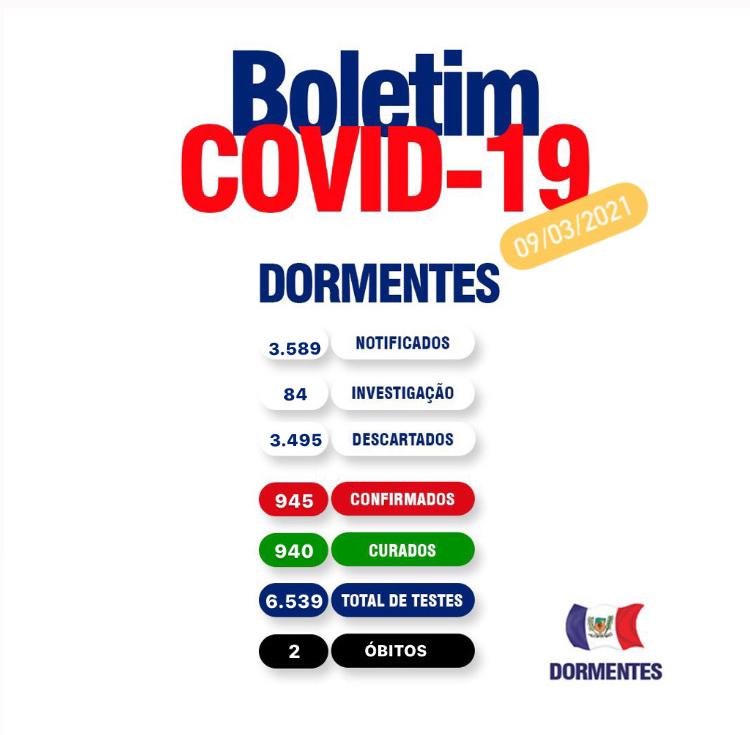 BOLETIM COVID: DOIS NOVOS CASOS SÃO REGISTRADOS EM DORMENTES