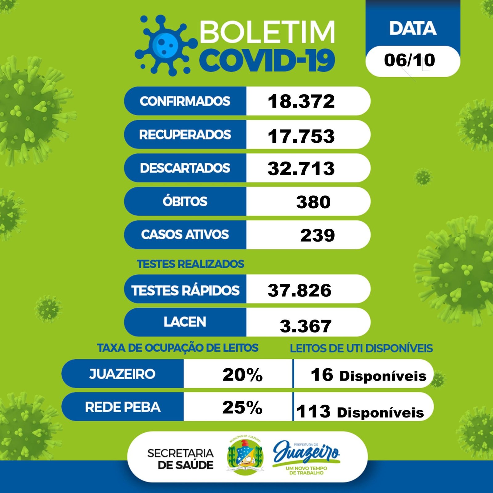 Juazeiro registrou 17 novos casos da Covid-19, de acordo com o boletim epidemiológico da Secretaria Municipal de Saúde (Sesau) desta quarta-feira (6).