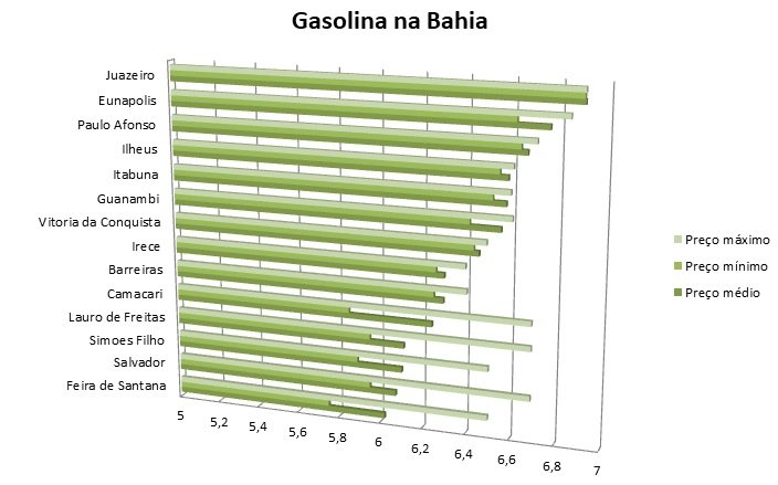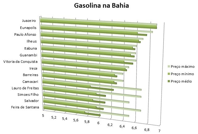 O litro de gasolina vendido em Juazeiro, no Sertão do São Francisco, foi apontado como o mais caro em uma amostra feita pela Agência Nacional do Petróleo Gás Natural e Biocombustíveis entre 14 cidades do estado. Segundo o levantamento, o preço médio, o que inclui o valor máximo, na cidade é de R$ 6,89.