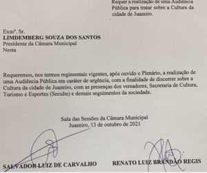 Para o parlamentar essa é uma questão que precisa ser avaliada o mais breve possível, independente de posição política: “Conto com a maioria dos colegas para que a gente possa fazer uma audiência pública, ampla, coletiva, não só da oposição, mas envolvendo todos, de forma conjunta, o município, o estado, algum representante a nível federal, os conselhos, os artistas, os sindicatos, porque está mais que na hora da gente retomar, de fato, um planejamento estratégico para o município de Juazeiro no quesito cultural”, finalizou.