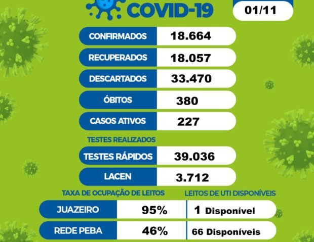 Há um mês, Juazeiro não registra óbito por Covid-19. O último registro de morte provocada por complicações da doença foi em 1º de outubro. O município permanece com 380 mortes por Covid-19. A informação está no boletim epidemiológico da Secretaria de Saúde (Sesau) desta segunda-feira (1º).