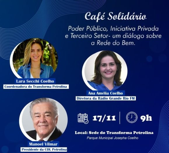 Além da Coordenadora do Transforma Petrolina, Lara Secchi Coelho, o evento contará com as participações de Manoel Vilmar, Presidente da CDL de Petrolina, e Ana Amélia Coelho, Diretora da Rádio Grande Rio FM.