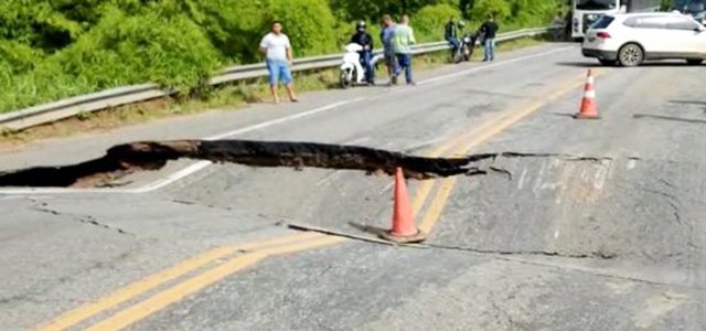 BR 330, Km 806, em Ubatã tem interdição total por conta de afundamento da pista. A orientação é que se faça desvio pela cidade.