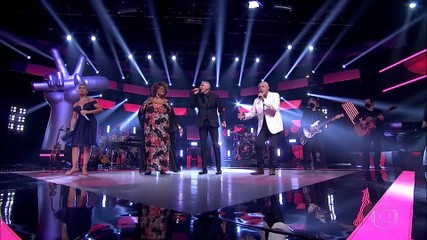 Técnicos e apresentadores na final do The Voice + — Foto: Camilla Maia/Gshow