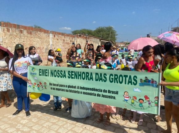 Pelas ruas da comunidade e embalados pelas fanfarras da Escola Municipal de Tempo Integral Paulo VI e Dinorah Albernaz Melo da Silva, os estudantes exaltaram as manifestações culturais juazeirenses, como símbolo de pertencimento e ressaltaram a importância preservação do rio São Francisco, reafirmando a relevância dos elementos que fazem parte da história e memória da cidade, tema central da programação do 7 de setembro, definida para este ano em Juazeiro.