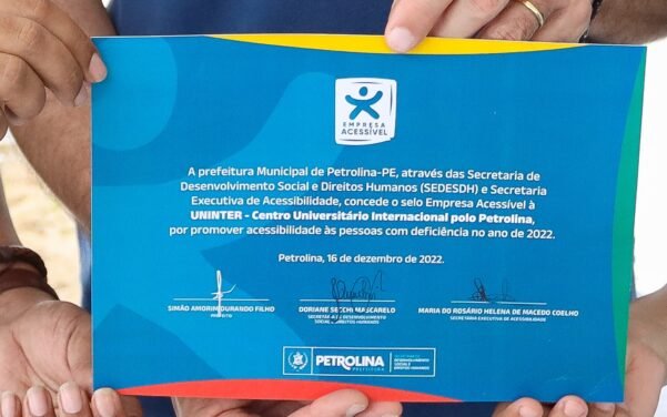 Como forma de reconhecimento e valorização das empresas que respeitam e promovem acessibilidade, assim como disponibilizam oportunidades de trabalho para pessoas com deficiência, a Prefeitura de Petrolina, através da Secretaria de Desenvolvimento Social e Direitos Humanos (SEDESDH), certificou a empresa UNINTER, com o selo ‘Empresa Acessível’.