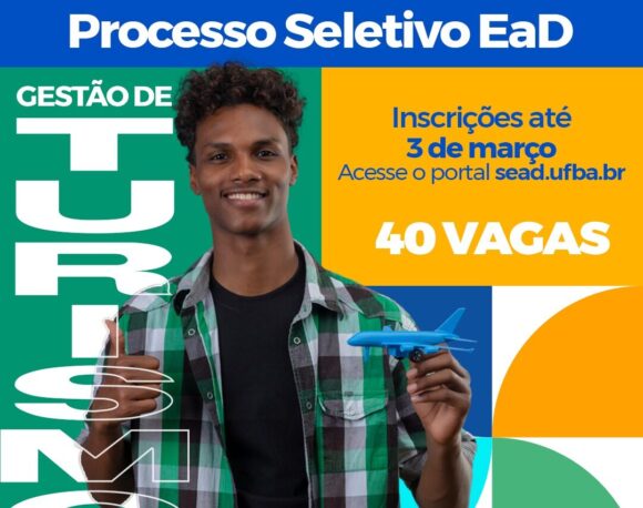Interessados no curso de Gestão de Turismo, oferecido pela UFBA, devem realizar inscrição até às 23:59h do dia 03 de março de 2023, através do Portal da SEAD/UFBA, disponível no link: www.sead.ufba.br.