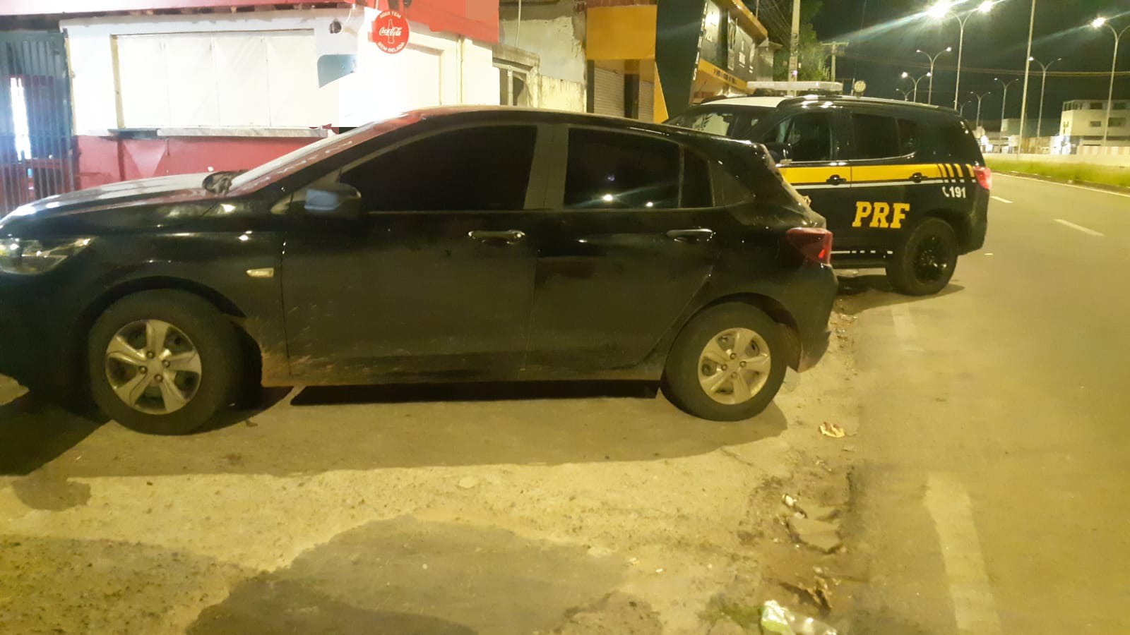 No decorrer de uma operação de segurança viária na BR-428, na madrugada desta terça-feira (14), o veículo Onix foi abordado. Ao iniciar a verificação, a equipe constatou uma restrição de furto, desde 25 de março de 2024, por uma empresa locadora de veículos. Os policiais contataram a empresa proprietária do automóvel, que alegou que o veículo não havia sido devolvido na data acordada, não conseguindo retorno para falar com o responsável pelo aluguel. Quando questionado, o motorista e seus passageiros alegaram ter comparecido na empresa duas vezes para a regularização de pendências, mas não tiveram sucesso.