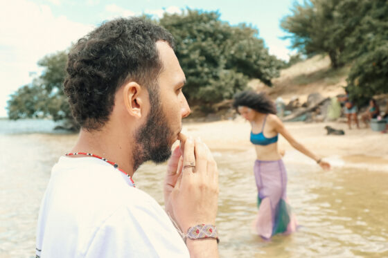 Guiado por essa perspectiva ecoperformática de construção cênica, LAB Afluentes também contará com a colaboração da artista visual Lissa Andrade e sua obra “Alimento”, uma instalação composta de redes de pesca recicladas e pedaços de plástico pet bordados, exposta no 15° Único – Salão de arte contemporânea do SESC Pernambuco, em 2023. Segundo Lissa, “esse intercâmbio é uma oportunidade de dar vida à obra, potencializar sua dimensão performática e redescobrir novas possibilidades de exposição e interação além dos espaços institucionais de arte”.