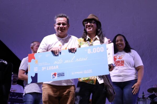 Já o terceiro colocado, ficou para música ‘A fortuna e a Migalha’ de Guilliard Pereira com prêmio de R$: 8.000,00. Todos os vencedores são de Petrolina-PE.Além da premiação em dinheiro, os artistas foram presenteados com troféus confeccionados pelo artesão, Antônio Lisboa, onde foram selecionadas quatro músicas do cantor Geraldo Azevedo como inspiração para os troféus. Com muita emoção, Wênia Trindade expressa a sua felicidade em ser ganhadora do concurso. “Gente, a música sempre vence, sempre vence. Parabéns a todos os artistas que pisaram nesse palco, a vida de artista é muito difícil, uma das profissões mais difíceis. A gente pensa em desistir, a gente leva não, as portas se fecham, pessoas querem contratar a gente por um valor que não é justo. Mas a música sempre vence, a arte sempre vence”, destaca.