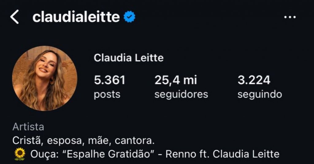 A bio do Instagram da artista também chamou a atenção do público. Nele, Claudia Leitte se descreve como uma mulher: cristã, esposa, mãe, cantora.