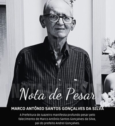 A Prefeitura de Juazeiro manifesta profundo pesar pelo falecimento de Marco Antônio Santos Gonçalves da Silva, pai do prefeito Andrei Gonçalves.