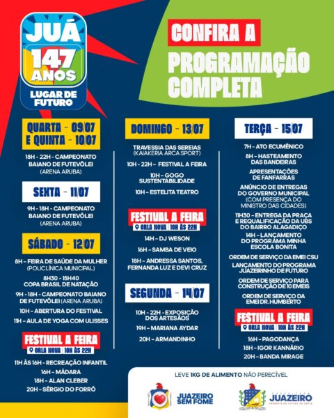 Juazeiro comemora seus 147 anos com uma programação especial na Orla II da cidade. Como parte das comemorações do aniversário, a Prefeitura de Juazeiro promove uma série de atividades culturais que valorizam a identidade local e movimentam a economia criativa do município.
