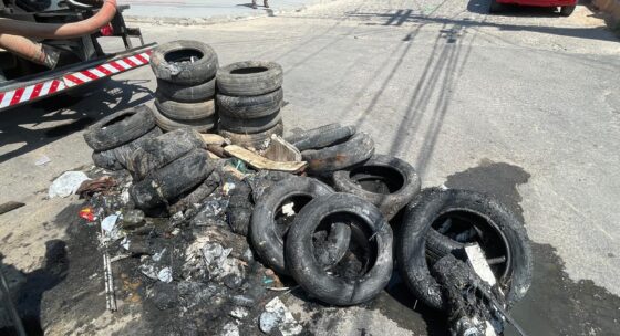 Esta semana, a equipe de manutenção da Bacia do Dom Avelar foi surpreendida quando, ao tentar desobstruir um poço de visita (PV) na Rua 12 do bairro Santa Luzia, foram encontrados dezenas de pneus e outros materiais descartados dentro da rede de saneamento.
