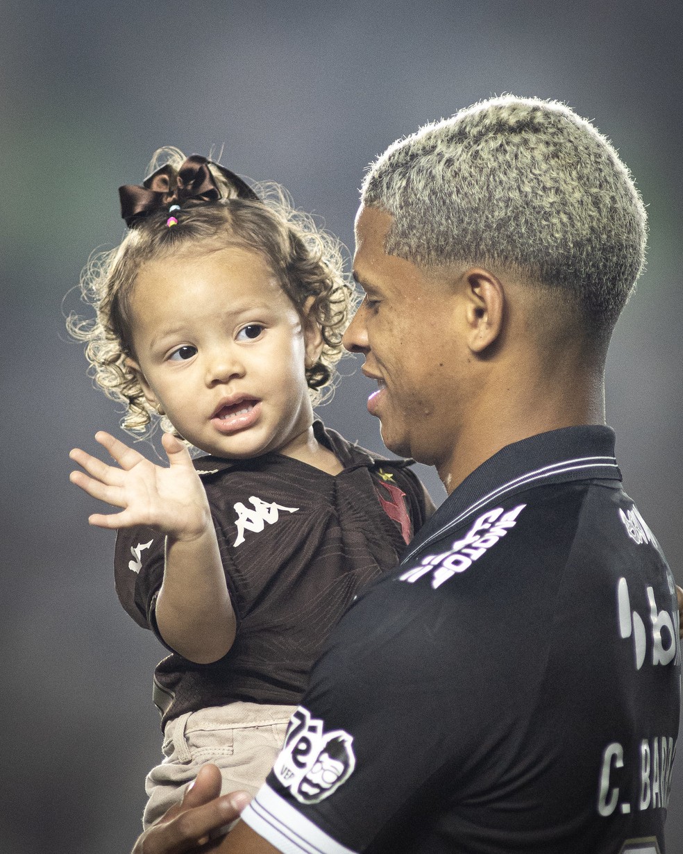 Barros, volante do Vasco, com a filha Sophia no colo — Foto: Matheus Lima / CRVG