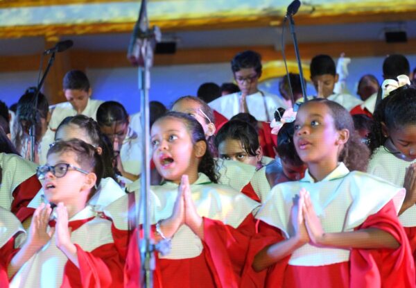 Diante de um cenário iluminado e com um show de projeções preparado especialmente para a programação, o coral interpretou clássicos natalinos e da Música Popular Brasileira. “As crianças emocionaram a todos.