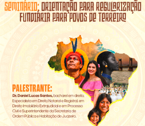 A Prefeitura de Juazeiro, por meio da Secretaria de Desenvolvimento Social, Diversidade, Igualdade Racial e Combate à Fome (SEDES), realiza na próxima quinta feira, dia 19 de fevereiro, às 14h, no Centro de Cultura João Gilberto, o Seminário: Orientação para Regularização Fundiária para Povos de Terreiro.