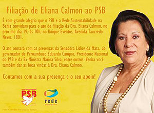 Um convite –já no formato de santinho– para a cerimônia de filiação da ministra do Superior Tribunal de Justiça Eliana Calmon ao PSB está chegando nas caixas de e-mails de seus colegas do Judiciário, advogados, simpatizantes e amigos.