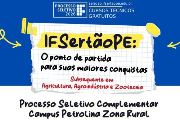 O campus Petrolina Zona Rural do IFSertãoPE lançou o Edital nº 01/2026, referente ao processo seletivo complementar para preenchimento de vagas dos cursos Subsequentes em Agricultura, Agroindústria e ...