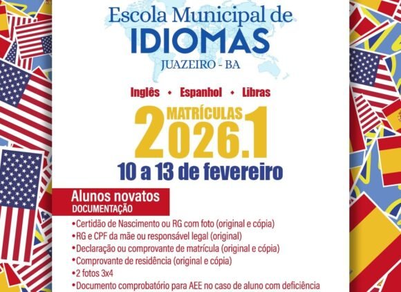 Os estudantes da rede municipal de ensino de Juazeiro podem aprender Inglês, Espanhol ou Língua Brasileira de Sinais gratuitamente na Escola Municipal de Idiomas. Os cursos, mantidos pela Prefeitura M...