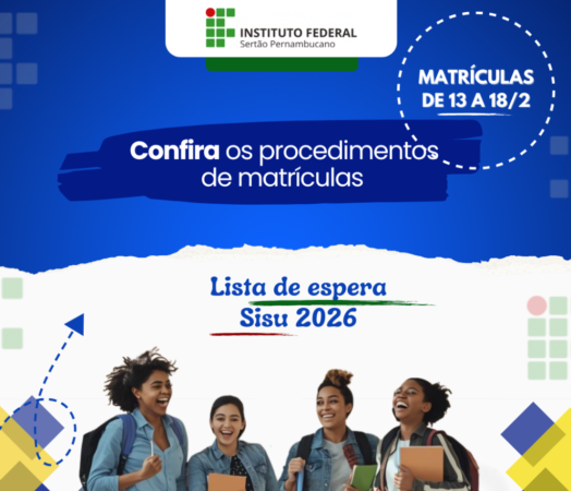 O Instituto Federal do Sertão Pernambucano (IFSertãoPE) publicou, nesta terça-feira (10), o edital n.º 23/2026, com os procedimentos e cronograma para realização de matrículas dos candidatos aprovados...